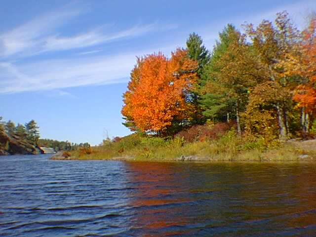 Oct, Nov, Dec 2006 calendar. Autumn colours where McDonald River empties into McCrae Lake.